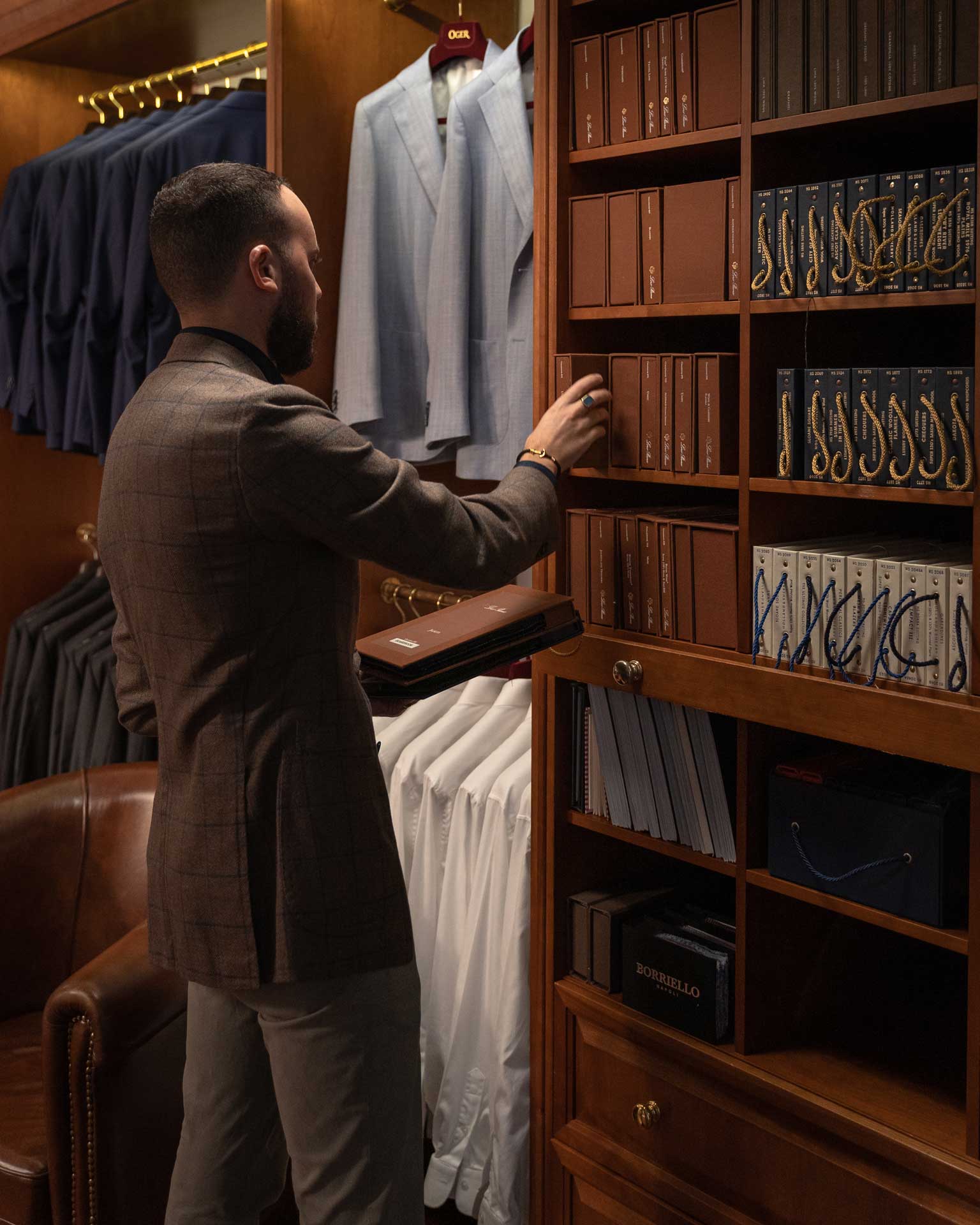 Bij OGÉR heeft u de keuze in tientallen stoffen van diverse, wereldberoemde stoffenhuizen. Van Loro Piana tot aan Finamore; alleen de fijnste stoffen stellen wij beschikbaar voor u. Naast de stof, kunt u kiezen voor de maakwijze, knopen en handgestikte elementen.